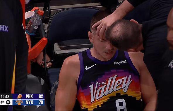 进入第四节比赛,双方持续紧咬比分缠斗至87-87,阿伦与阿奴诺比相撞后鼻子受伤下场治疗,伊戈达罗也鼻子受伤塞着棉花。太阳内外开花一波8-0攻势取得领先,奥尼尔三分命中扩大98-89领先优势,双方随后连续造犯规罚球得分,太阳扩大102-92领先。布里奇斯三分与麦克布莱德抛射追到差5分,马威内线命中,双方随后接连打铁不中。马威被犯规两罚不中,唐斯暴扣追分,阿伦被犯规两罚全中扩大7分优势,尼克斯已经无力扭转局势,最终太阳逆转战胜尼克斯。