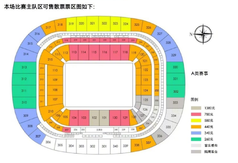 根据票务公告,这场京沪大战的球票,将从3月17日10:00正式开票。票价依然分为6个档次,分别为:260、340、440、580、780、1380。对比2025赛季的京沪大战可以发现,各档次球票都维持不变。当然,客队区的票价进行了细化调整,由上赛季的260、440,调整到新赛季的260、340、440共3个档次。